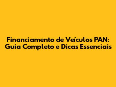 O Que é o Financiamento de Veículos PAN?