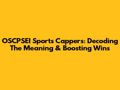 OSCPSEI Sports Cappers: Decoding The Meaning & Boosting Wins