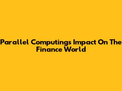 Parallel Computing's Impact On The Finance World