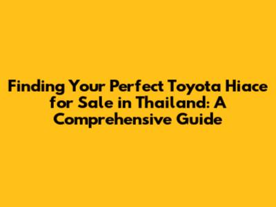 Where to Find a Toyota Hiace for Sale in Thailand: Top Resources