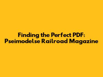Where to Find Pseimodelse Railroad Magazine PDFs