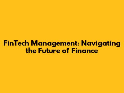 The Future of FinTech Management