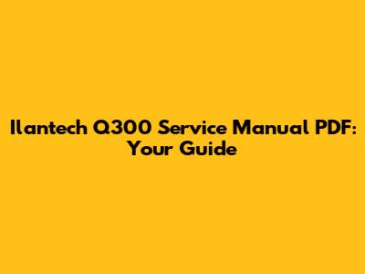 Ilantech Q300 Service Manual PDF: Your Guide