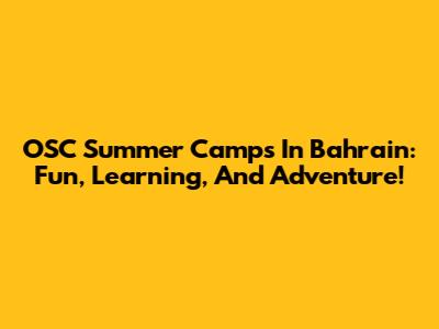 OSC Summer Camps In Bahrain: Fun, Learning, And Adventure!