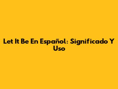 Let It Be En Español: Significado Y Uso