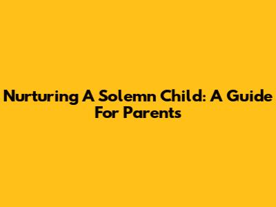 Nurturing A Solemn Child: A Guide For Parents