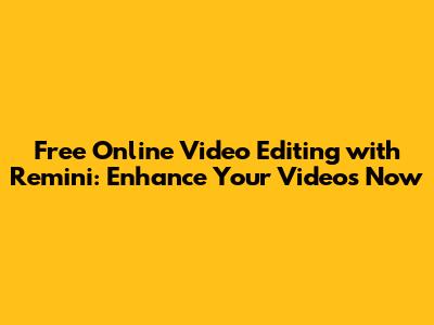 How to Use Remini for Free Online Video Editing: A Step-by-Step Guide