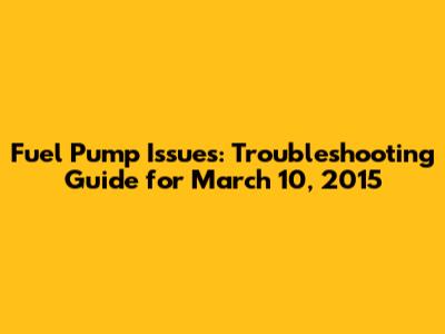 Hey guys! Let's dive into something that can really throw a wrench in your day: fuel pump problems. Specifically, we're going to focus on issues that might have popped up around March 10, 2015. Don't worry, we'll break it down so it's easy to understand, even if you're not a car whiz. We'll look at the common signs, what could be causing the trouble, and how you might go about fixing it. Having a car die on you is never fun, right? This guide is here to help you get back on the road ASAP.