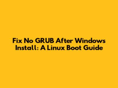 Fix No GRUB After Windows Install: A Linux Boot Guide