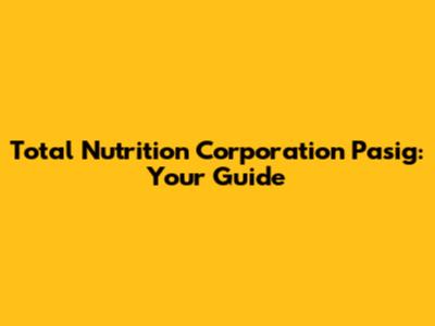 Total Nutrition Corporation Pasig: Your Guide