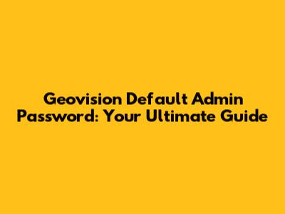 Okay, so let's get right to it: What is the Geovision default admin password? Well, like many security systems, Geovision cameras and DVRs come with a pre-set password that allows you to access the system's settings and functions right out of the box. Think of it as the key to your castle. The most common Geovision default admin password is often 'admin' or sometimes a blank password (meaning you just press enter). However, it's essential to check the specific documentation for your Geovision model, as these defaults can vary. This is especially true if you are dealing with an older model. It's really important to keep in mind that leaving the system with the Geovision default admin password is a HUGE security risk. It's like leaving your front door unlocked. Anyone who knows the default password can access your system, view your camera feeds, change settings, or even take control of the system. This is a big no-no! Think about it: all your surveillance footage could be exposed to unauthorized parties, putting your property and your privacy at risk. So the first thing we are going to do is figure out what the default password is. Most often than not, it is admin, but if it does not work, it's best to consult your product's manual.