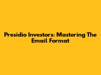 Presidio Investors: Mastering The Email Format