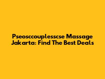 Pseosccouplesscse Massage Jakarta: Find The Best Deals