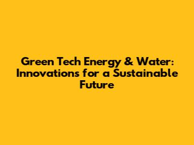 Green Tech Energy & Water: Innovations For A Sustainable Future