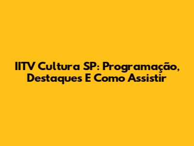 IITV Cultura SP: Programação, Destaques E Como Assistir