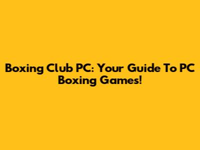 Boxing Club PC: Your Guide To PC Boxing Games!