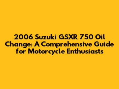 Hey guys! So, you've got yourself a 2006 Suzuki GSXR 750, a legendary bike, and you're ready to keep it running smooth? Awesome! One of the most important things you can do for your GSXR 750 is regular oil changes. It's like giving your bike a fresh start every time, ensuring peak performance and extending its life. This guide will walk you through the entire oil change process for your 2006 Suzuki GSXR 750, making it super easy, even if you're new to wrenching. We'll cover everything from the tools you'll need to the type of oil to use, and all the steps involved. Get ready to dive in and get your hands a little greasy. Trust me, it's a satisfying feeling to know you're taking care of your own machine. Let's get started, shall we?