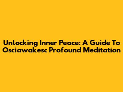 Unlocking Inner Peace: A Guide To Osciawakesc Profound Meditation