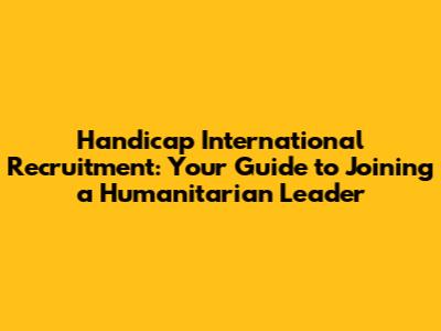 Are you passionate about making a difference in the world? Do you dream of a career where you can use your skills to help those most in need? If so, then Handicap International recruitment, now known as Humanity & Inclusion, might just be your calling! This organization is a global leader in the field of humanitarian action, working tirelessly to support people with disabilities and vulnerable populations affected by conflict, disasters, and poverty. Getting a job here means really contributing to a great cause.
