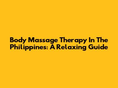 Body Massage Therapy In The Philippines: A Relaxing Guide