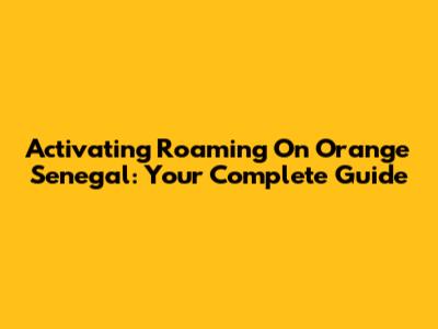 Activating Roaming On Orange Senegal: Your Complete Guide
