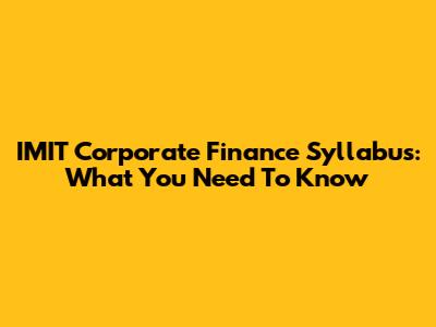 IMIT Corporate Finance Syllabus: What You Need To Know