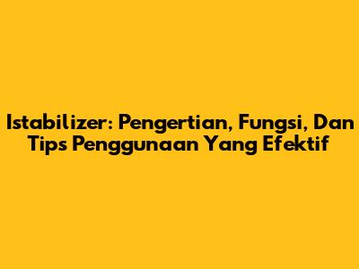 Istabilizer: Pengertian, Fungsi, Dan Tips Penggunaan Yang Efektif