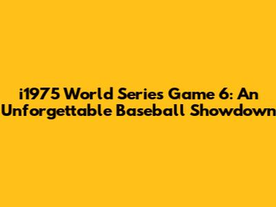 I1975 World Series Game 6: A Baseball Classic