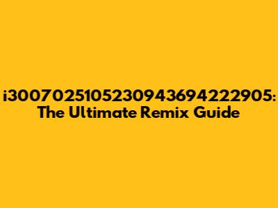 I3007025105230943694222905: The Ultimate Remix Guide