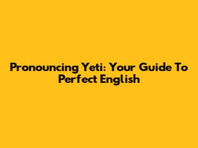 Pronouncing Yeti: Your Guide To Perfect English