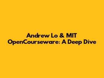 Andrew Lo & MIT OpenCourseware: A Deep Dive