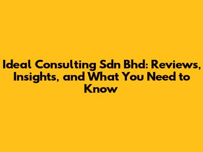 Ideal Consulting Sdn Bhd: Reviews, Insights, And What You Need To Know