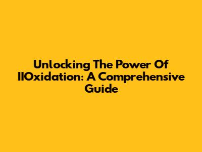 Unlocking The Power Of IIOxidation: A Comprehensive Guide