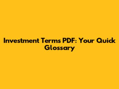 Investment Terms PDF: Your Quick Glossary