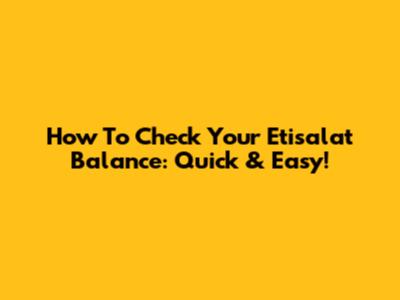 How To Check Your Etisalat Balance: Quick & Easy!