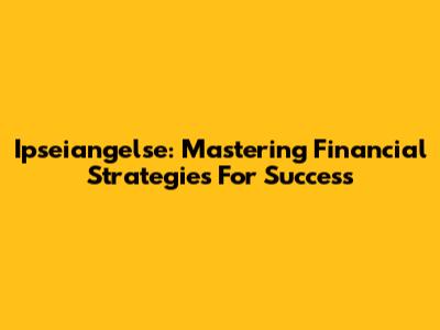 Ipseiangelse: Mastering Financial Strategies For Success