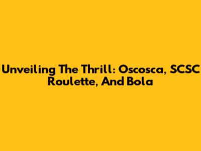 Unveiling The Thrill: Oscosca, SCSC Roulette, And Bola