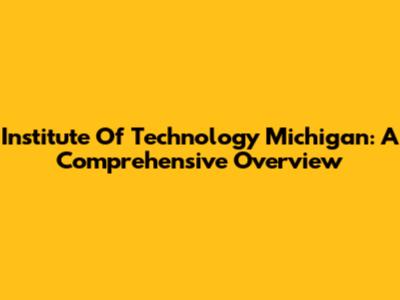 Institute Of Technology Michigan: A Comprehensive Overview