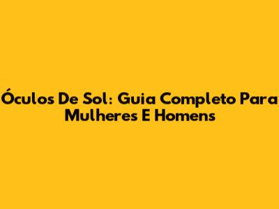 Óculos De Sol: Guia Completo Para Mulheres E Homens