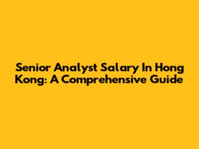 Senior Analyst Salary In Hong Kong: A Comprehensive Guide