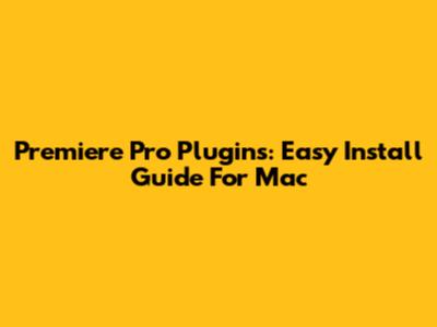 Premiere Pro Plugins: Easy Install Guide For Mac