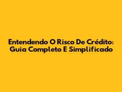 Entendendo O Risco De Crédito: Guia Completo E Simplificado