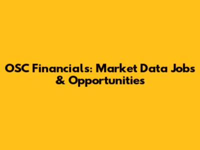 OSC Financials: Market Data Jobs & Opportunities