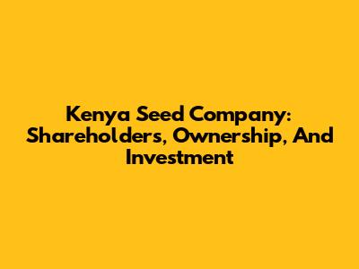 Kenya Seed Company: Shareholders, Ownership, And Investment