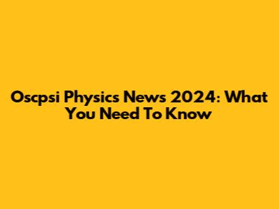 Oscpsi Physics News 2024: What You Need To Know