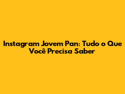 O Que é o Instagram da Jovem Pan?