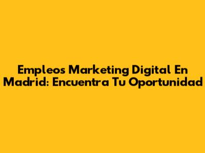 Empleos Marketing Digital En Madrid: Encuentra Tu Oportunidad