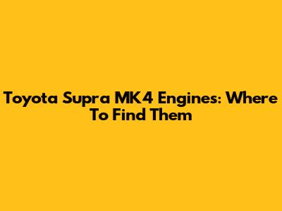 Toyota Supra MK4 Engines: Where To Find Them