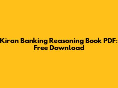 Kiran Banking Reasoning Book PDF: Free Download