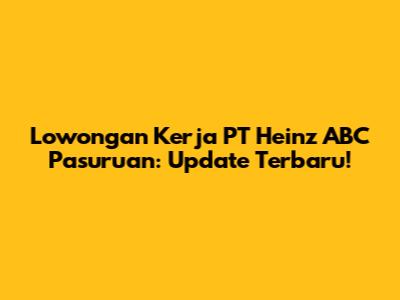 Lowongan Kerja PT Heinz ABC Pasuruan: Update Terbaru!
